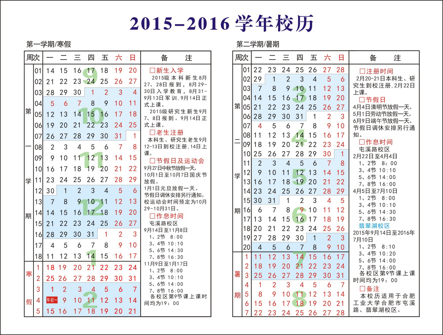 2015-2016学年校历