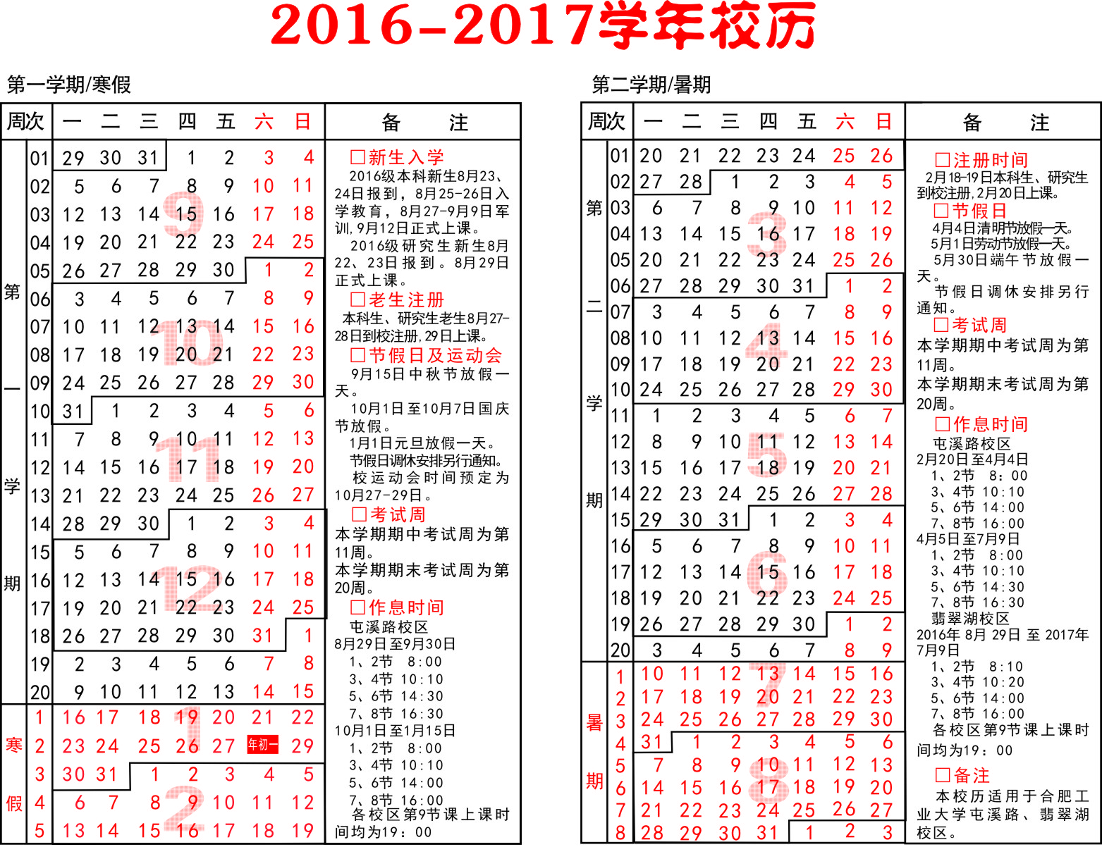 2016-2017学年校历